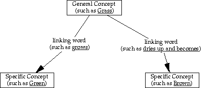 The basic Novakian concept map, as depicted above, usually starts with a general concept at the top of the map, and then works its way down through a hierarchical structure to more specific concepts. Concepts are placed in a box, while linking words are not. Lines are drawn from a concept to a linking word to a concept. Sequences of concepts and linking words do not always form grammatically correct sentences. This style is very simple and elegant. One can express complex and powerful ideas with a minimum of graphic elements. This, of course, does not prevent one from constructing maps with different shape boxes, lines of different colors, multiple fonts, and other fancy features, so long as one makes an effort to avoid the mapping equivalent of 'chart junk': graphics where the very fanciness and impressiveness of the graphic impedes the viewer's ability to clearly understand the information the graphic is trying to convey.